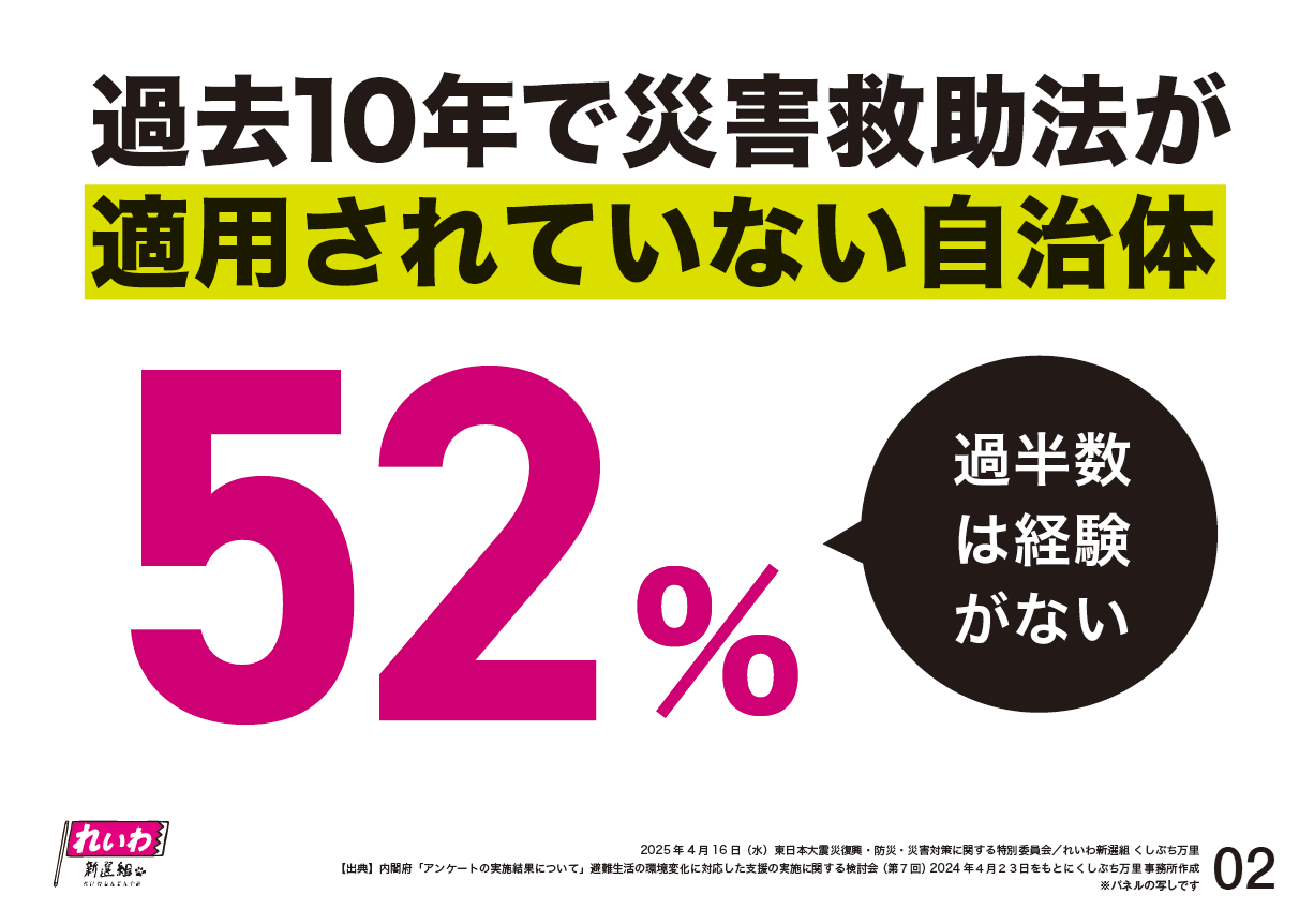 過去十年で「災害救助法」が適用されていない自治体は52%。つまり、過半数の自治体は、災害対応の経験がないんです。