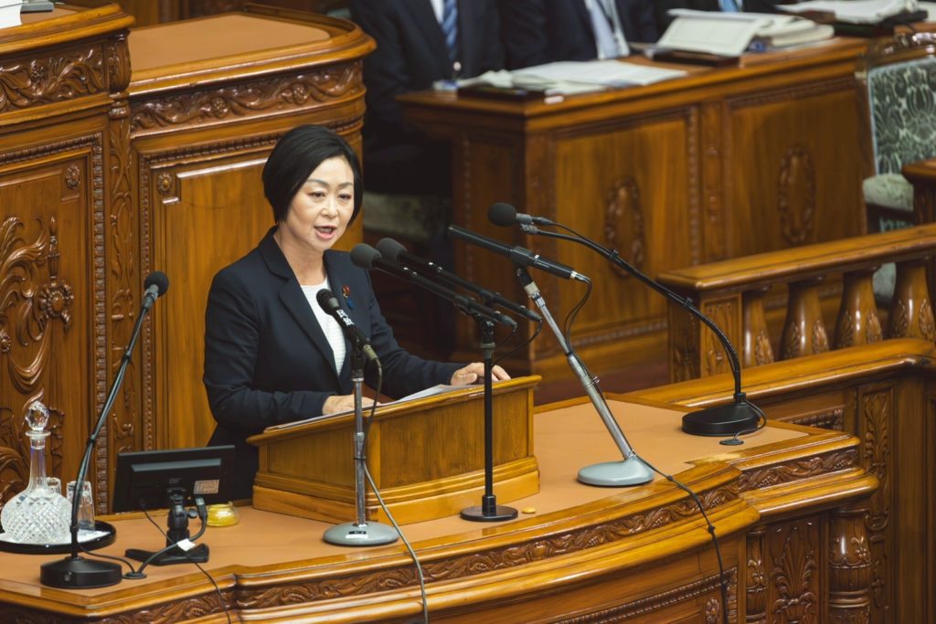 日本の避難所は百二年前の関東大震災の頃から変わっていません。初動態勢の遅れ、体育館に雑魚寝、冷たい食事、劣悪な環境による災害関連死の多発。避難所だけではありません。被災者の人権も憲法も守られていない。「総理も大臣も、これが自民党政治の結果であるという自覚がありますか」と、厳しく指摘しました。