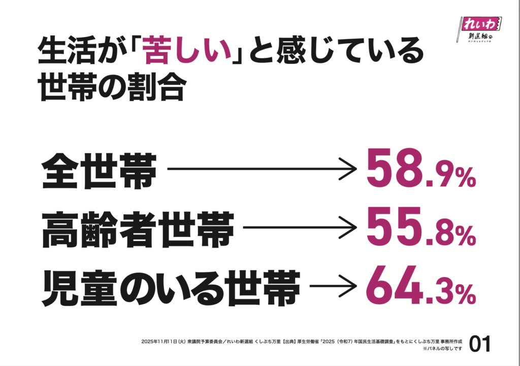生活が苦しいと訴えている国民は6割、子どもがいる世帯は6,5割にも及びます。