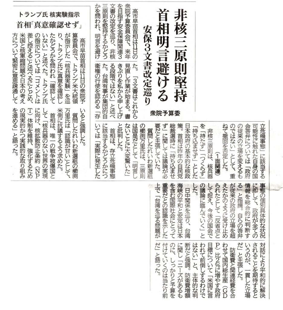 非核三原則堅持 首相名言避ける