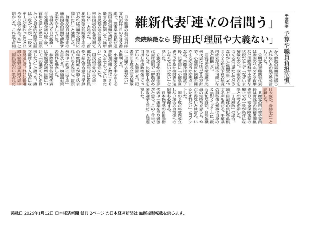 維新代表「連立の信問う」