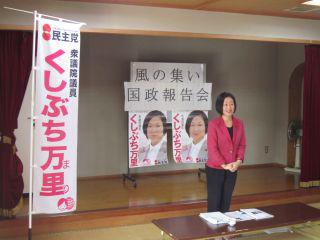 国政報告会in相原 2011年10月11日 最終更新日時 : 2018年11月9日 kushibuchi-mari.jp 10日、相原元橋会館にて国政報告会を行いました。 FacebookXBlueskyCopy