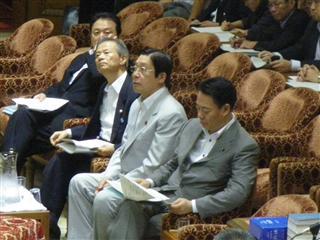 10日午後、再生可能エネルギー法案について、経済産業委員会、農林水産委員会、環境委員会の合同審査会が開催されました。委員会室には、海江田万里経済産業相、鹿野道彦農水相、江田五月環境相の3大臣がそろい踏み。