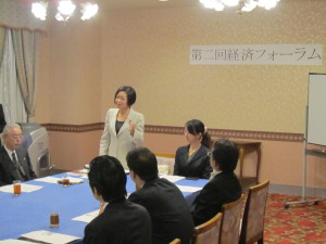 第2回経済フォーラム 2011年11月22日 最終更新日時 : 2018年11月9日 kushibuchi-mari.jp 22日、ラポール千寿閣にて。経済産業省の通商政策局経済連携課の藤澤可南子課長補佐をお招きして、皆さんからご要望の多かったTPPについての勉強会を行いました。参加された中小企業の経営者の方々からたくさんの忌憚ないご意見をいただきました。 FacebookXBlueskyCopy
