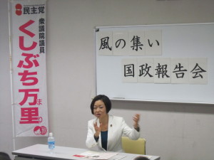 国政報告会 2012年5月20日 最終更新日時 : 2018年11月9日 kushibuchi-mari.jp 20日、成瀬駅前市民センターにて、国政報告会を行いました。社会保障と税改革における焦点のひとつ、子ども政策についてご報告。さらに、原発や再生エネルギー、外交や教育など積極的なご意見をいただきました。ご参加の皆さま、ありがとうございました。 FacebookXBlueskyCopy