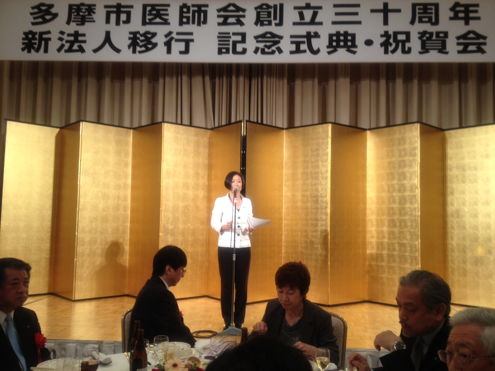多摩市医師会30周年 2012年5月26日 最終更新日時 : 2018年11月9日 kushibuchi-mari.jp 今日は、多摩市医師会が社団法人30周年を迎えるとともに一般社団法人へ移行した記念講演会、記念式典、祝賀会が行われました。 私も祝賀会に出席し、祝辞を述べさせていただきました。 長きにおいて多摩市の市民の健康を担っていただいた先生方に心から感謝を申し上げます。 FacebookXBlueskyCopy
